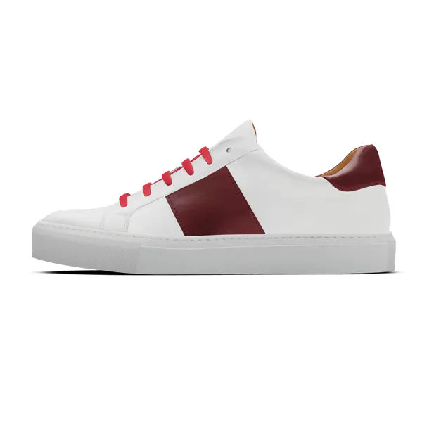 Fashion Sneakers White & burgundy leather Sneakers with side band